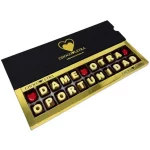 Nada dice tanto como un gesto dulce y único. Con nuestra caja de chocolates personalizados, tienes la oportunidad de pedir una segunda oportunidad con estilo. El mensaje «Dame Otra Oportunidad» sobre estos deliciosos bombones es solo un ejemplo de lo que puedes crear. Diseña tu frase especial, elige tus combinaciones favoritas y hazte con esta caja ahora mismo para emocionar y sorprender a tus seres queridos.