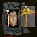 Huevo de Chocolate es la mitad del Huevo para romper con el martillo, tiene unas dimensiones de 15cm de alto x 9,5cm de ancho.