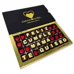 Caja de 36 Bombones de chocolate con el mensaje -Feliz cumple mama te quiero–