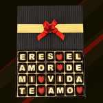 Caja de 28 Bombones de Chocolate con el mensaje especial: “Eres el Amor de mi Vida, Te Amo”