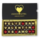 Caja de 27 Bombones de chocolate con el mensaje -Feliz San Valentín te amo-
