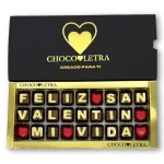 Caja de 27 Bombones de chocolate con el mensaje -Feliz San Valentรญn mi vida-